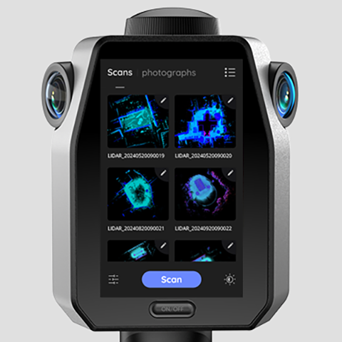 3.5インチ画面を搭載し、スキャン中は「点群」「写真」「点群+写真の分割表示」の3モードでリアルタイム表示が可能。